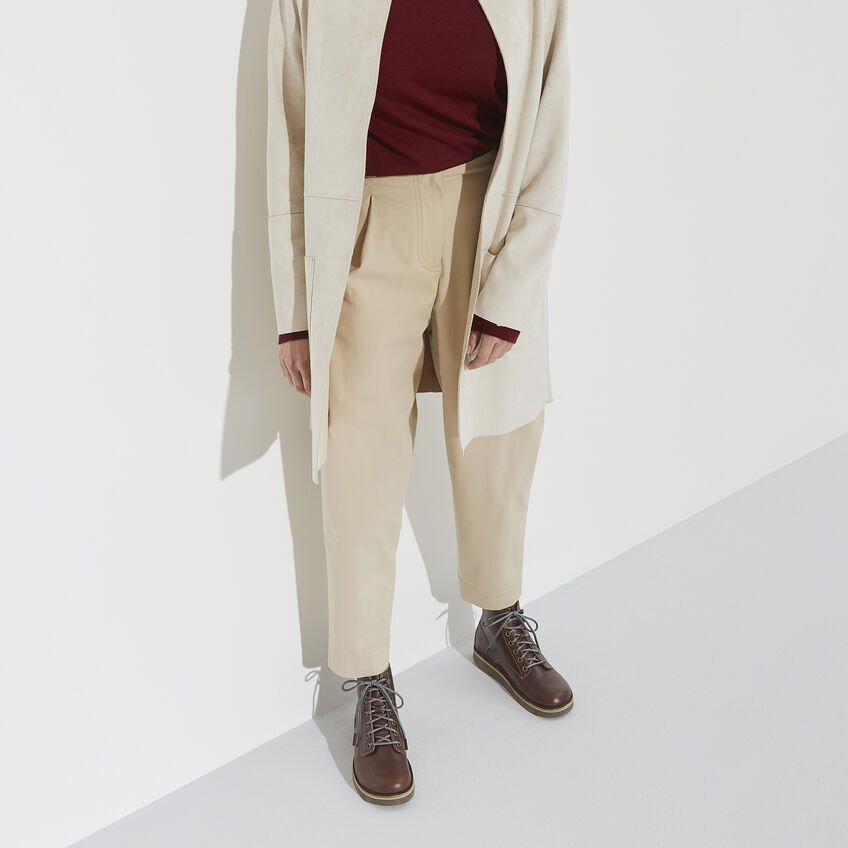 BIRKENSTOCK Birmingham Lace è uno stivaletto stringato rustico che ti sorprenderà. La suola esterna in gomma è robusta, assicura tutta la stabilità necessaria e, se usurata, può essere riparata. Il plantare Deep Blue è comodo e leggero e rende questa scarpa così confortevole che può essere indossata sempre senza problemi, anche in quelle giornate che non finiscono mai, piene di cose da fare. Perfetta per il prossimo viaggio, per lunghe passeggiate o per un giro in città. Questo classico è ora disponibile in versione premium con cuciture vistose e una tramezza in pelle. La tramezza costituisce la parte interna del plantare e non è visibile. La tomaia è in vacchetta Horween particolarmente pregiata, sviluppata originariamente per essere utilizzata nello sport professionistico.