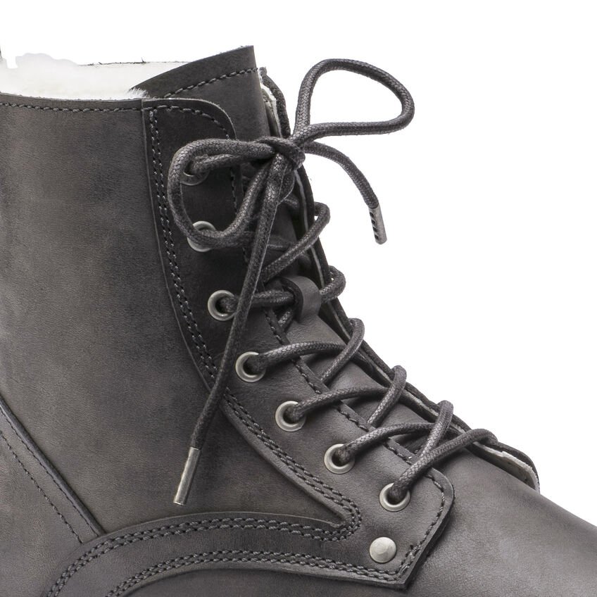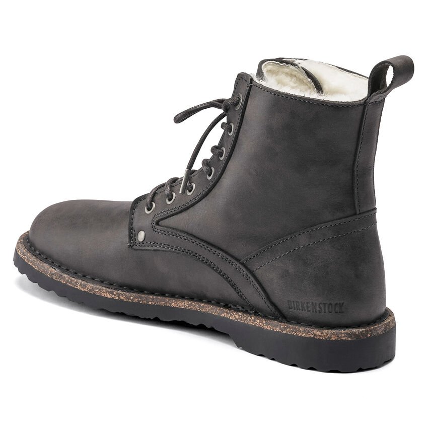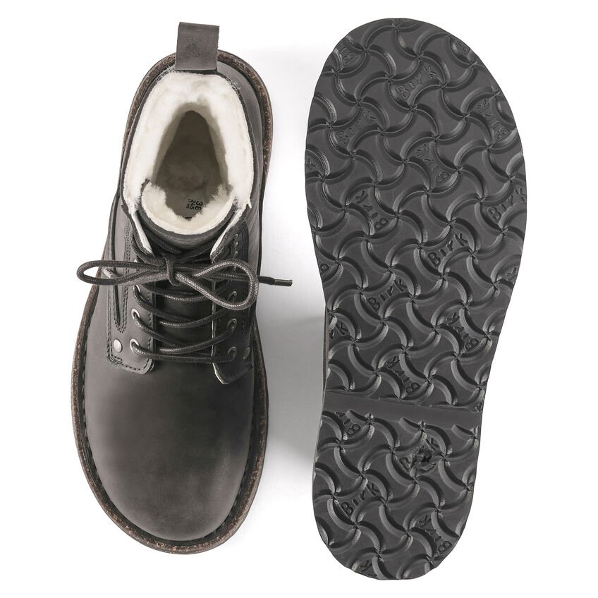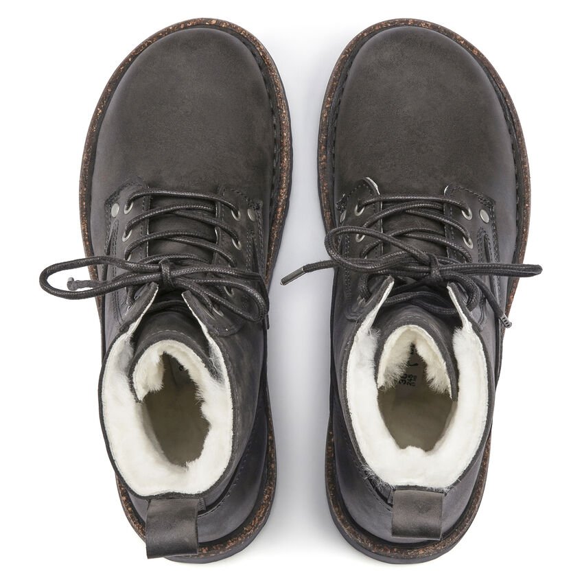 BIRKENSTOCK Bryson è uno stivale stringato casual dal convincente look lineare e rustico. La suola esterna dal profilo in sughero dona a questa scarpa un design autentico. Questo classico si mostra qui in una variante particolarmente comoda con sottopiede e imbottitura in pelliccia di agnello. La tomaia è in pelle scamosciata idrofoba e oliata.