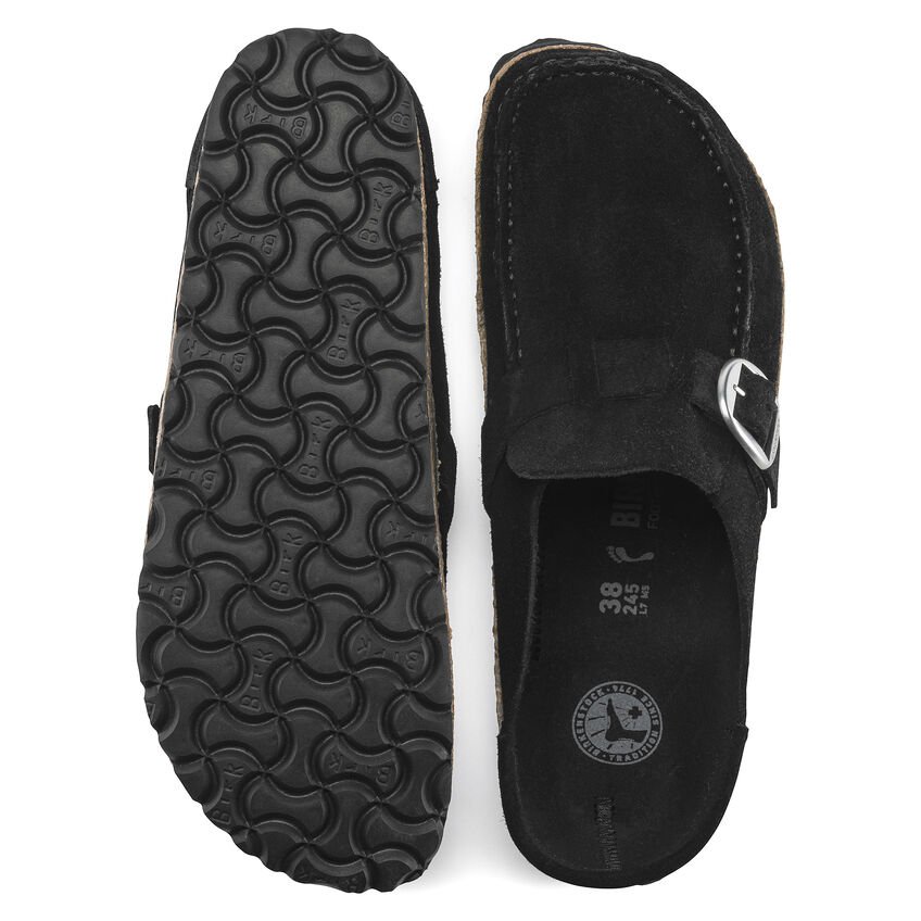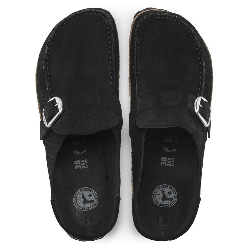 BIRKENSTOCK Buckley è un sabot semiaperto in stile mocassino, un vero originale BIRKENSTOCK immediatamente riconoscibile dall’ampia suola in sughero. L’appariscente cucitura è una vera chicca. Questa variante si presenta con i nostri amati Big Buckle. La tomaia contribuisce a ricreare un design naturale grazie alla pelle scamosciata particolarmente morbida che aderisce al piede come una seconda pelle.