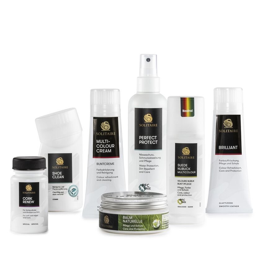 Il prodotto Cork Renew del nostro partner Solitaire è l’alleato perfetto per i sandali BIRKENSTOCK con plantare naturale in sughero e lattice. Nutre, protegge e sigilla i bordi della suola e i piccoli strappi. Per prevenire l'essiccazione e la friabilità e massimizzare la durata delle scarpe.