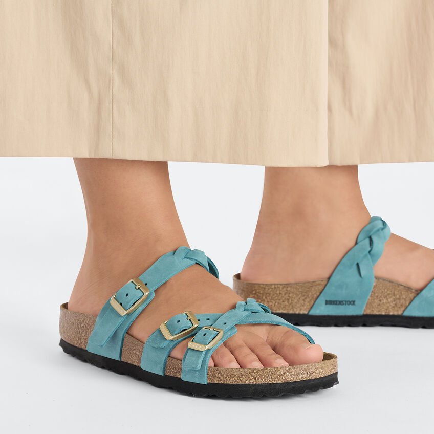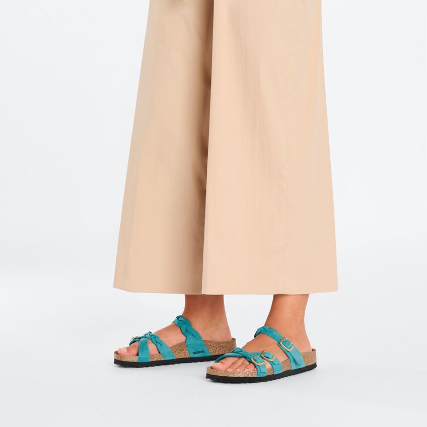 BIRKENSTOCK Franca è un sandalo dinamico con sottili cinturini incrociati. La riuscita combinazione di design e comodità accompagna con eleganza e praticità le donne che amano la moda, tutto il giorno. Qui il modello si presenta con un dettaglio particolare: i cinturini sono lavorati con motivo a intreccio e sono perfetti per i moderni stili boho. La tomaia è composta da pelle nabuk particolarmente spessa e oliata, lavorata a cuciture aperte.