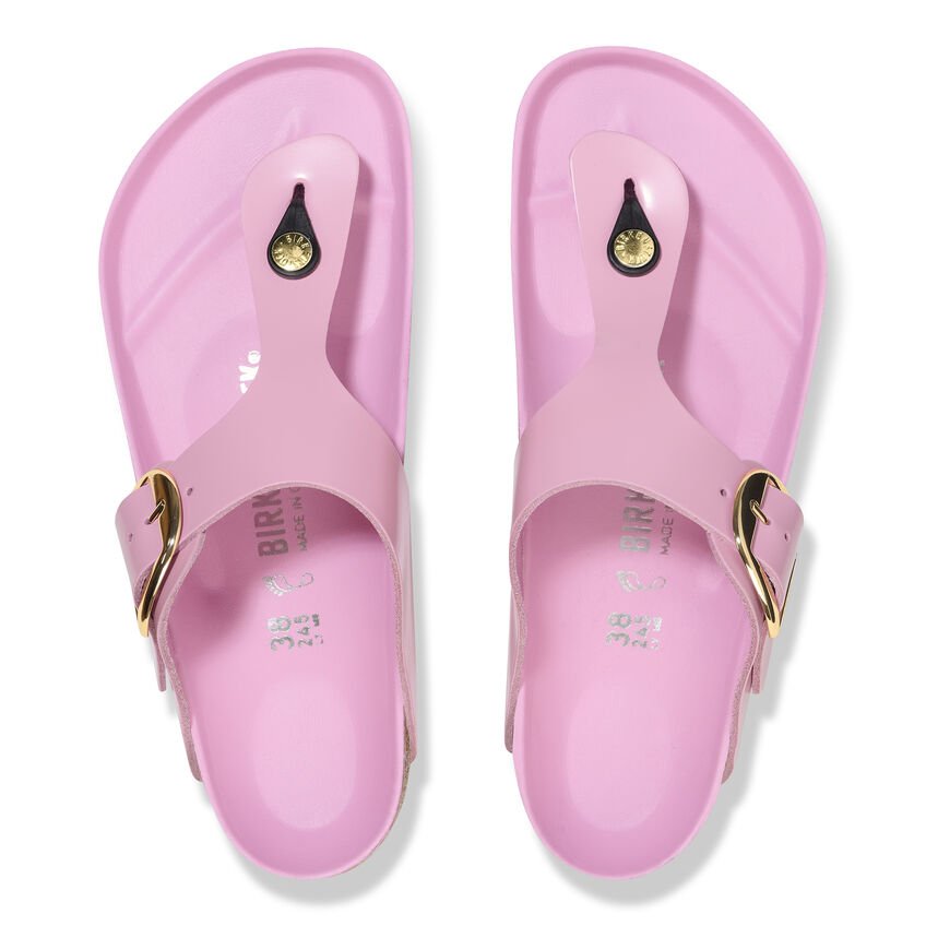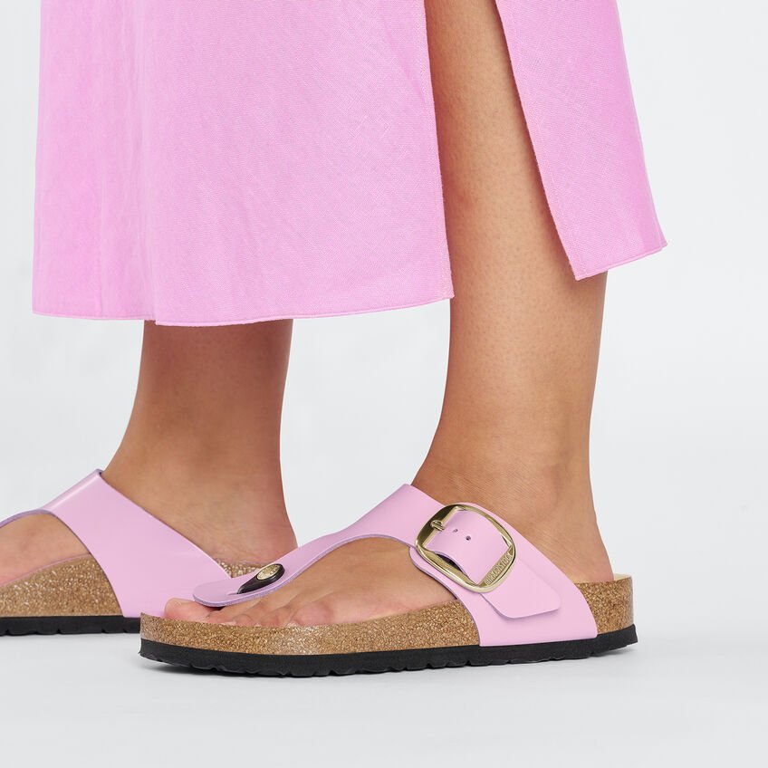 Il modello BIRKENSTOCK Gizeh unisce il design minimalista e alla moda a una stabilità ottimale: un vero classico. La versione Big Buckle presenta una fibbia ad ardiglione grande ed elegante. Il sottopiede del plantare semi-exquisit è completamente rivestito in pelle piumato e offre una straordinaria comodità. La tomaia è in pregiata pelle naturale con una brillante finitura laccata.