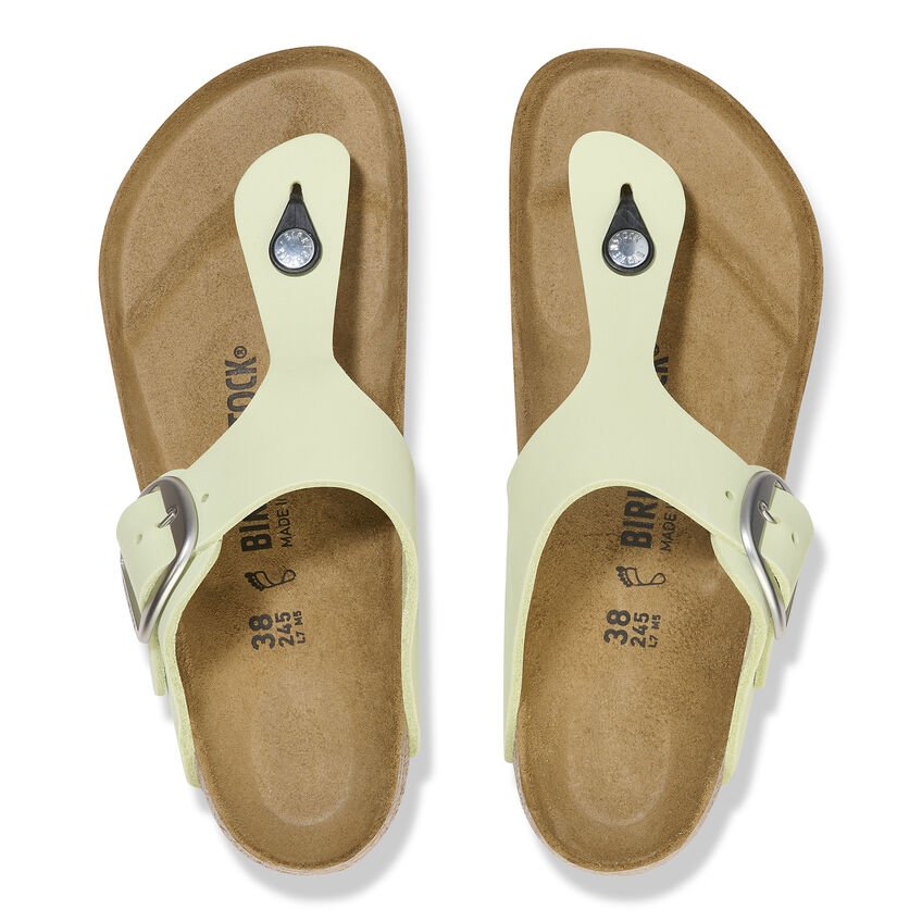 Il modello BIRKENSTOCK Gizeh unisce il design minimalista e alla moda a una stabilità ottimale: un vero classico. La variante Big Buckle presenta una fibbia ad ardiglione grande ed elegante, un bel particolare che spicca su questi sandali molto sobri. La tomaia è in pregiata pelle nabuk, fantastica con il suo look naturale e rustico.
