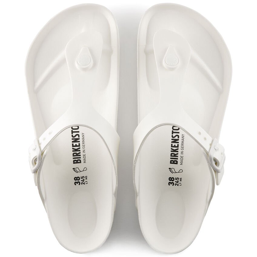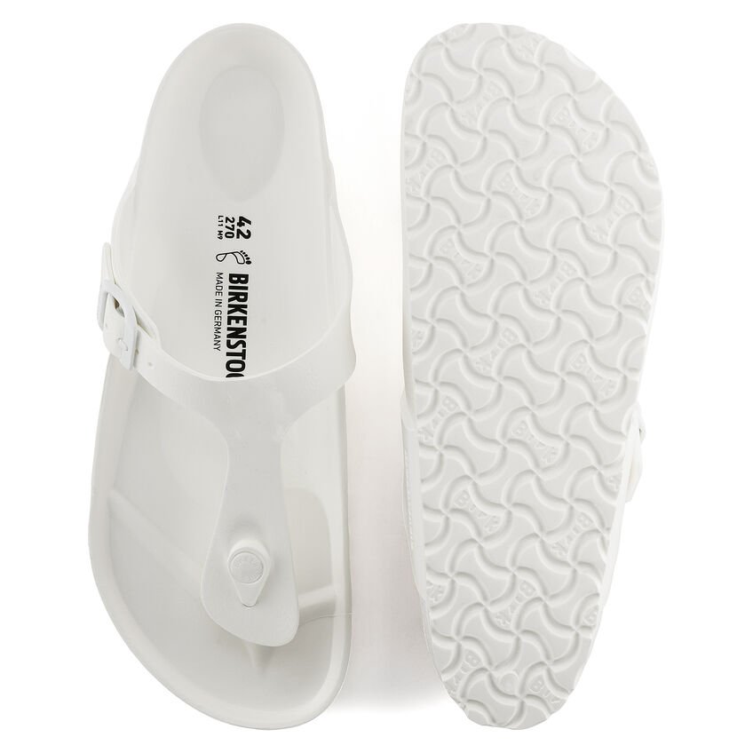 L'infradito BIRKENSTOCK Gizeh è un vero classico. Questo modello che, una volta indossato, ricorda la leggerezza del sandalo di sughero, è in materiale EVA particolarmente leggero e molto flessibile. La pregiata plastica EVA, inodore e priva di sostanze nocive, riunisce in sé molte caratteristiche positive: è molto leggera, estremamente elastica, ammortizzante, dermoaffine e assicura la consueta vestibilità BIRKENSTOCK.