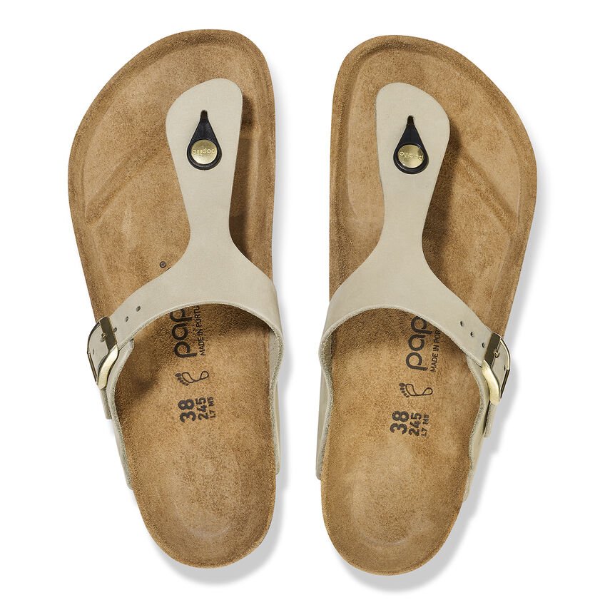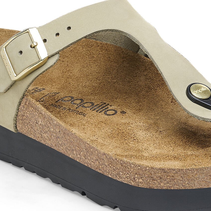 Il modello BIRKENSTOCK Gizeh unisce il design minimalista e alla moda a una stabilità ottimale: un vero classico. La nuova suola esterna Platform Flex si allarga sul tallone per offrire una stabilità e una distribuzione del peso maggiori. Il nuovo design con solchi orizzontali nella parte posteriore migliora la flessibilità e il rollio del piede. La tomaia è in pregiata e morbida pelle nabuk, fantastica con il suo look naturale e rustico.