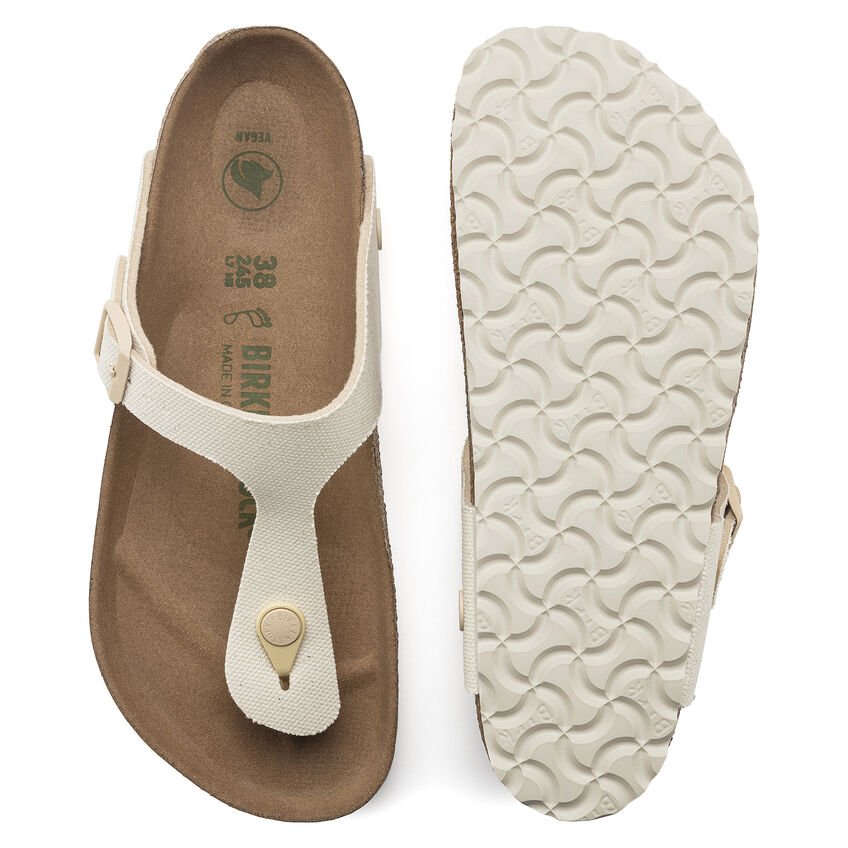 Il modello BIRKENSTOCK Gizeh unisce il design minimalista e alla moda a una stabilità ottimale: un vero classico. È stato prodotto con un materiale rinnovato ed è ora disponibile in versione vegan. Il modello viene inoltre sottoposto a controlli effettuati da laboratori indipendenti per garantire che non vi siano parti di origine animale. Le fibbie hanno la percezione tattile di un tessuto e un design opaco e sono in colore coordinato, proprio come la suola esterna, il che conferisce ancora più risalto al modello. La tomaia è in tessuto morbido.