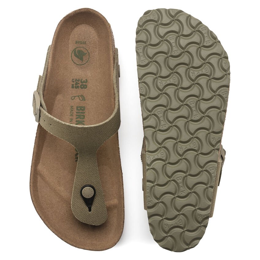 Il modello BIRKENSTOCK Gizeh unisce il design minimalista e alla moda a una stabilità ottimale: un vero classico. È stato prodotto con un materiale rinnovato ed è ora disponibile in versione vegan. Il modello viene inoltre sottoposto a controlli effettuati da laboratori indipendenti per garantire che non vi siano parti di origine animale. Le fibbie hanno la percezione tattile di un tessuto e un design opaco e sono in colore coordinato, proprio come la suola esterna, il che conferisce ancora più risalto al modello. La tomaia è in tessuto morbido.