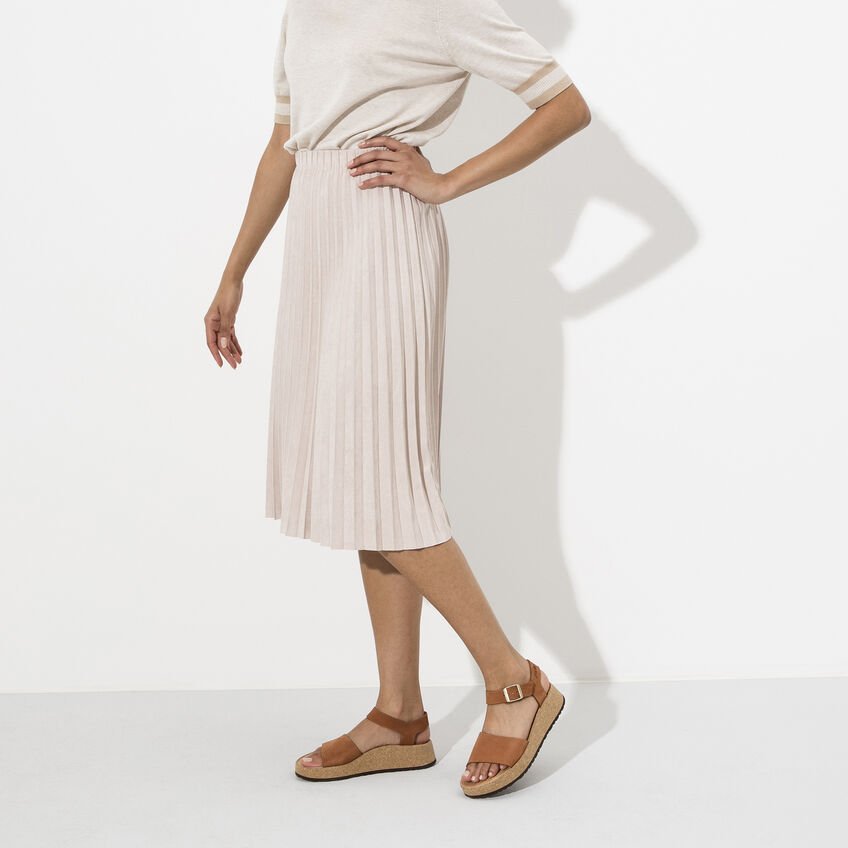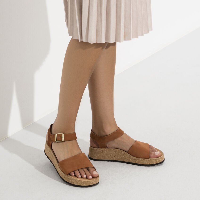 Il sandalo Glenda di Papillio è un sandalo con plateau e una leggera zeppa e plantare integrato. Questo modello affascina le donne che amano la moda e la comodità, grazie alla sua grande stabilità e aderenza date dall'ampia fascia sul collo del piede e dal cinturino per il tallone Nonostante sia un sandalo robusto, conserva un aspetto femminile. La tomaia è in pregiata e morbida pelle nabuk, fantastica con il suo look naturale e rustico.