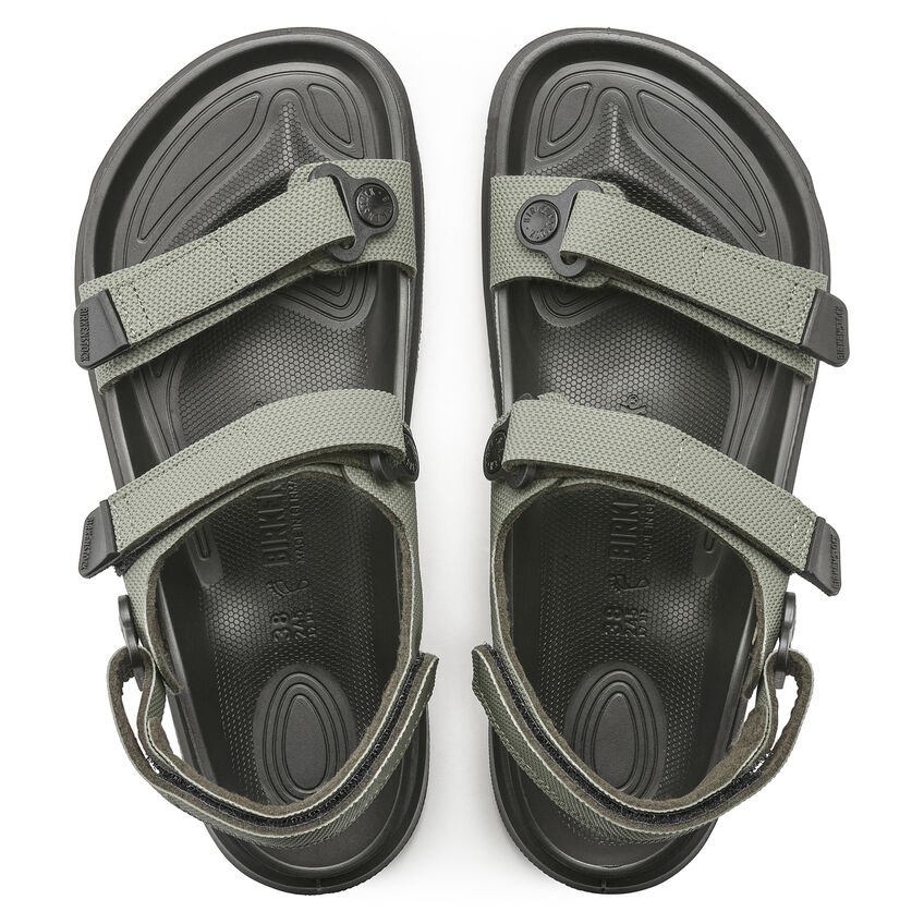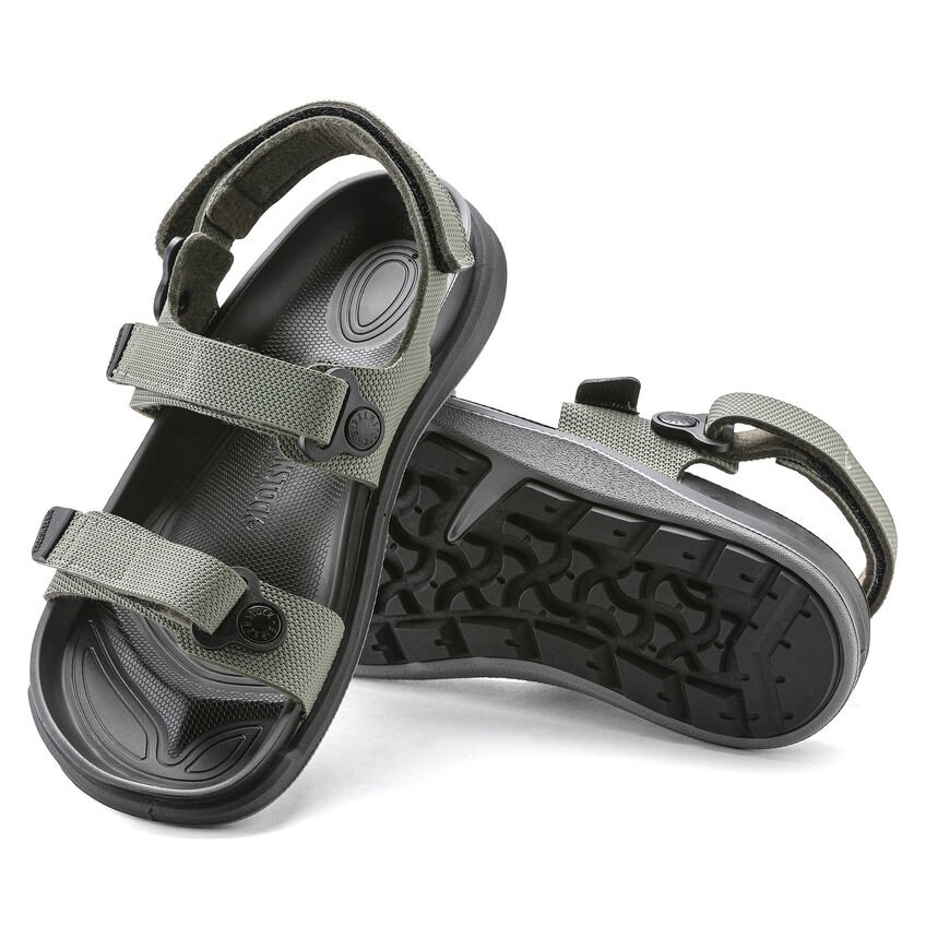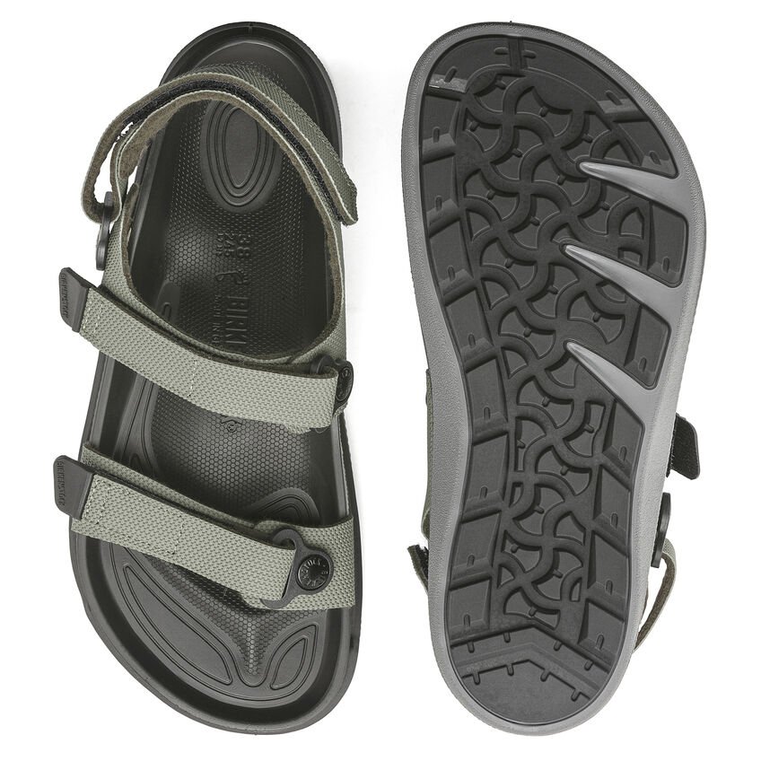 BIRKENSTOCK Kalahari è una variazione del nostro classico Milano ed è il sandalo ideale per chi è sempre in piedi, tutto il giorno. Le fibbie ad ardiglione sono sostituite dalla chiusura in velcro e la suola è stata rafforzata nella zona del tallone. Kalahari ti stupirà con tutta la sua comodità e un’accresciuta funzionalità. Questa variante si mostra in tutta la sua sportività per tutti i fan BIRKENSTOCK attivi che amano l’avventura. Il plantare in colore coordinato completa l’aspetto raffinato del sandalo. La tomaia è in Birko-Flor®, un materiale sintetico resistente all’usura e delicato per la pelle, che qui è stato reinterpretato in un look futuristico.