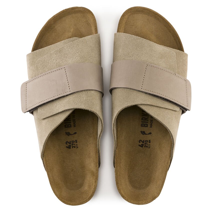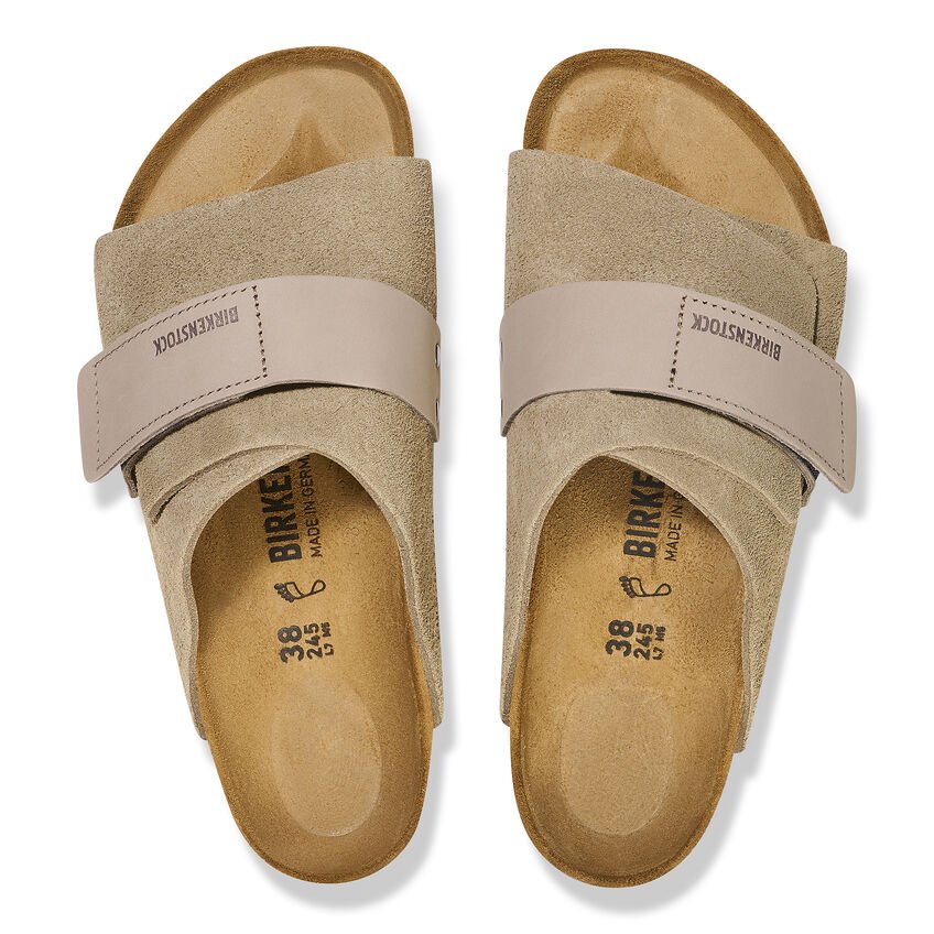 Il modello casual BIRKENSTOCK Kyoto è ispirato dal classico Zürich ed è caratterizzato da un design compatto con chiusura regolabile individualmente che garantisce stabilità ottimale ed è completata da dei rivetti decorativi. La tomaia è composta da pelle scamosciata particolarmente morbida, che aderisce al piede come una seconda pelle, in combinazione a pelle nabuk naturale.