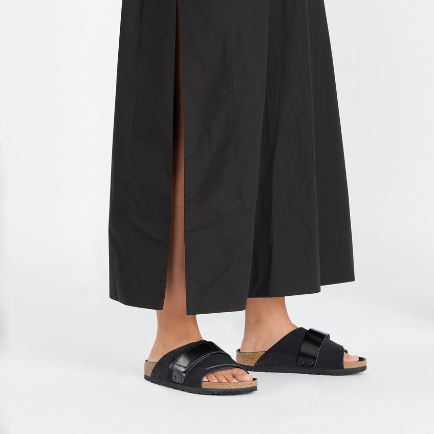 Il modello casual BIRKENSTOCK Kyoto è ispirato dal classico Zürich ed è caratterizzato da un design compatto con chiusura regolabile individualmente che garantisce stabilità ottimale ed è completata da dei rivetti decorativi. Le chiusure brillanti rappresentano un vero tocco di stile. Il sottopiede del plantare semi-exquisit è completamente rivestito in pelle piumato e offre una straordinaria comodità. La tomaia è in pregiata e morbida pelle nabuk, fantastica con il suo look naturale e rustico.