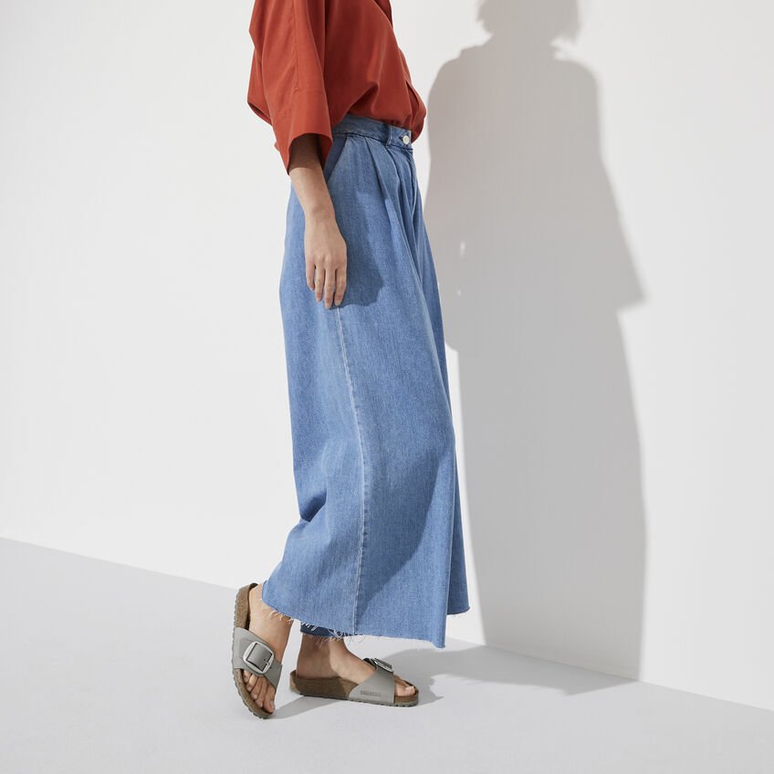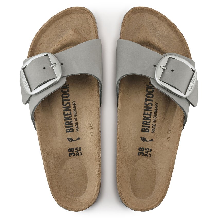 Il modello BIRKENSTOCK Madrid è un vero classico che entusiasma il mondo della moda con il suo design essenziale. La variante Big Buckle presenta una fibbia ad ardiglione grande ed elegante, un bel particolare che spicca su questi sandali molto sobri. La tomaia è in pregiata pelle nabuk, fantastica con il suo look naturale e rustico.