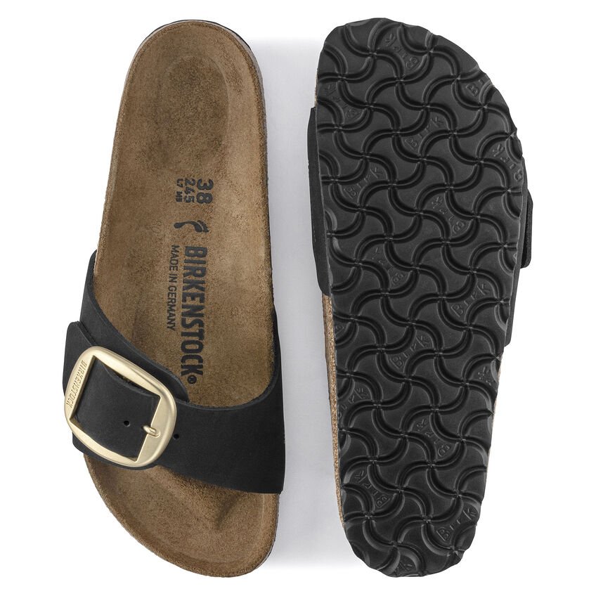 Il modello BIRKENSTOCK Madrid è un vero classico che entusiasma il mondo della moda con il suo design essenziale. La variante Big Buckle presenta una fibbia ad ardiglione grande ed elegante, un bel particolare che spicca su questi sandali molto sobri. La tomaia è in pregiata pelle nabuk, fantastica con il suo look naturale e rustico.