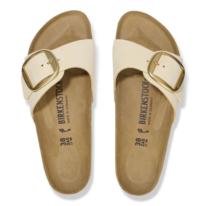 Il modello BIRKENSTOCK Madrid è un vero classico che entusiasma il mondo della moda con il suo design essenziale. La variante Big Buckle presenta una fibbia ad ardiglione grande ed elegante, un bel particolare che spicca su questi sandali molto sobri. La tomaia è in pregiata pelle nabuk, fantastica con il suo look naturale e rustico.
