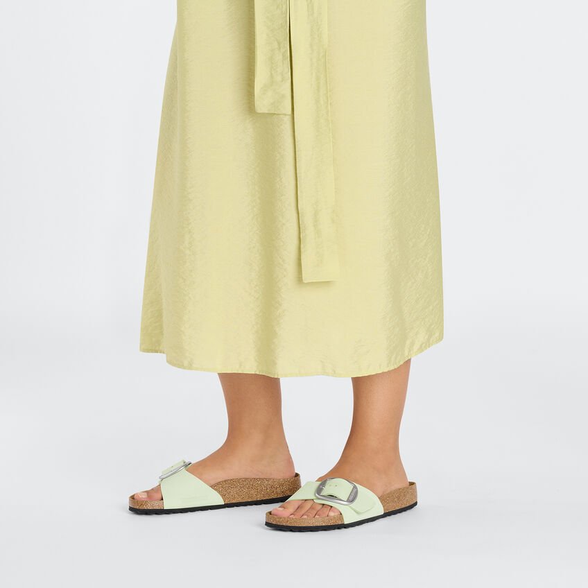 Il modello BIRKENSTOCK Madrid è un vero classico che entusiasma il mondo della moda con il suo design essenziale. La variante Big Buckle presenta una fibbia ad ardiglione grande ed elegante, un bel particolare che spicca su questi sandali molto sobri. La tomaia è in pregiata pelle nabuk, fantastica con il suo look naturale e rustico.