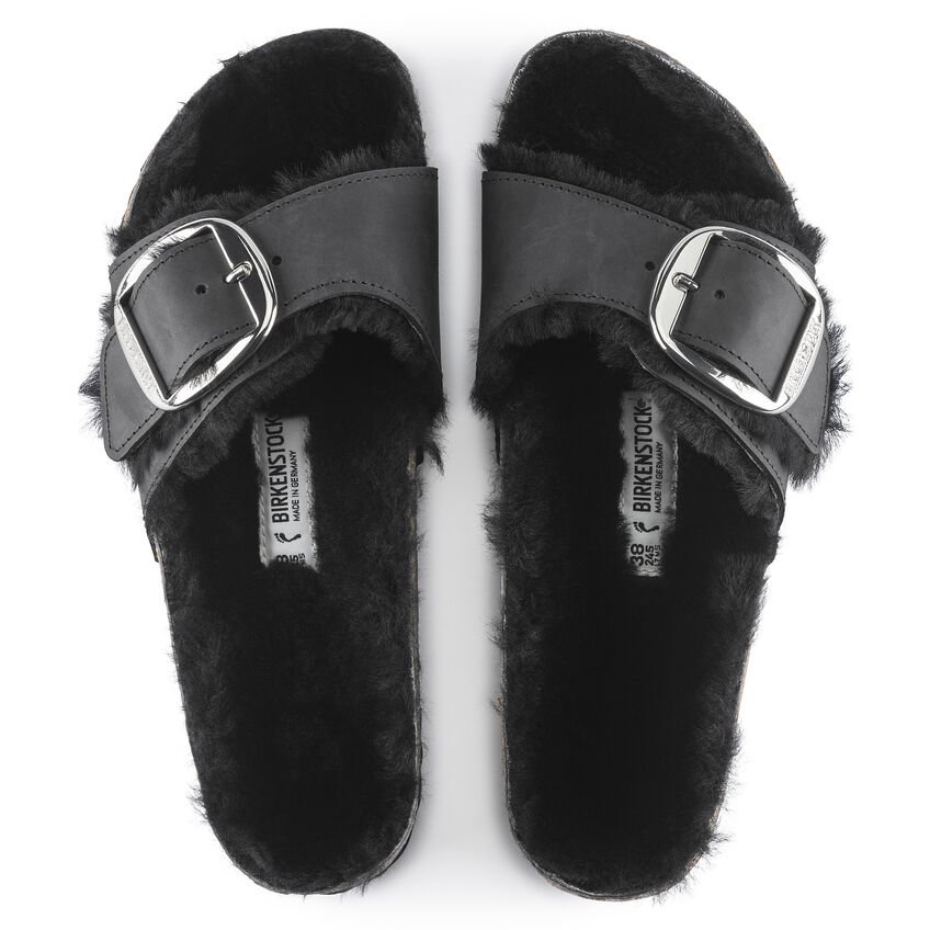 Il modello BIRKENSTOCK Madrid è un vero classico che entusiasma il mondo della moda con il suo design essenziale. Questa variante si mostra in una versione particolarmente morbida e calda con sottopiede in pelliccia di agnello coordinato con i cinturini rivestiti in pelliccia di agnello nella parte inferiore e fibbie grandi ed eleganti. La tomaia è composta da pelle nabuk particolarmente spessa e oliata, lavorata a cuciture aperte.
