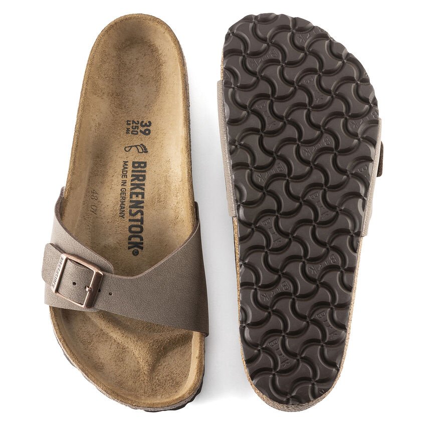 La pianella BIRKENSTOCK Madrid è il primissimo modello della grande famiglia BIRKENSTOCK e, a ragione, è considerata un vero classico. Lanciata mezzo secolo fa sul mercato come “pianella da ginnastica", questo modello a cinturino unico dalle linee essenziali è diventato ora una vera icona di moda. La tomaia è in materiale sintetico Birko-Flor® dermoaffine e resistente e presenta un raffinato effetto Nabuk. Grazie alla speciale lavorazione, la tomaia può essere facilmente scambiata per vera pella sia per colore che per texture.