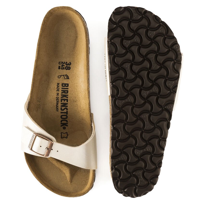 Il modello BIRKENSTOCK Madrid è un vero classico che entusiasma il mondo della moda per l’essenzialità del suo design. Questa versione del sandalo è infatti caratterizzata da un rivestimento brillante effetto seta. La tomaia è in materiale sintetico Birko-Flor® dermoaffine e resistente.