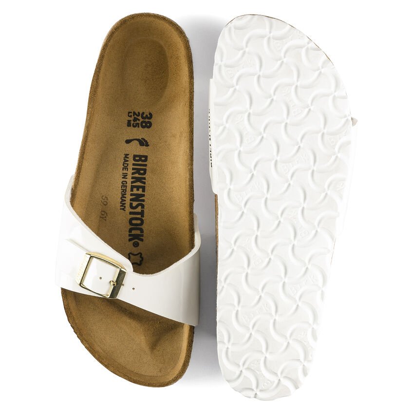 La pianella BIRKENSTOCK Madrid è il primissimo modello della grande famiglia BIRKENSTOCK e, a ragione, è considerata un vero classico. Lanciata mezzo secolo fa sul mercato come “pianella da ginnastica", questo modello a cinturino unico dalle linee essenziali è diventato ora una vera icona di moda. Il battistrada della suola in colore a contrasto crea un forte impatto con la tomaia, completando così il look. La tomaia è in materiale sintetico Birko-Flor®, dermoaffine e resistente, con rivestimento in vernice lucida.