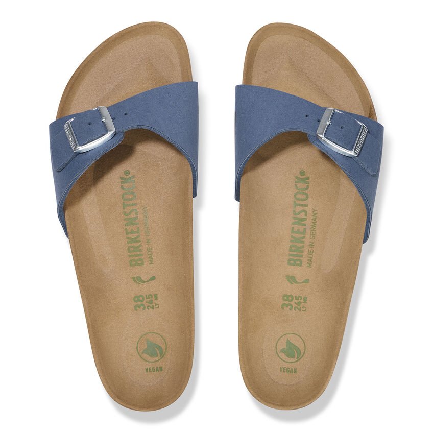 Il modello BIRKENSTOCK Madrid è un vero classico che entusiasma il mondo della moda con il suo design essenziale. È stato prodotto con un materiale rinnovato ed è ora disponibile in versione vegan. Il modello viene inoltre sottoposto a controlli effettuati da laboratori indipendenti per garantire che non vi siano parti di origine animale. La tomaia è in un materiale sintetico delicato sulla pelle e con la sensazione tattile di un velluto.