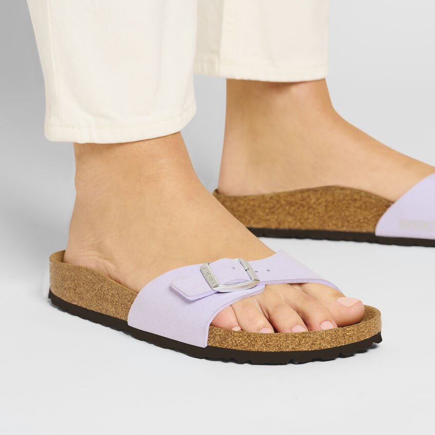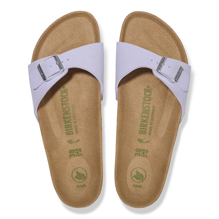 Il modello BIRKENSTOCK Madrid è un vero classico che entusiasma il mondo della moda con il suo design essenziale. È stato prodotto con un materiale rinnovato ed è ora disponibile in versione vegan. Il modello viene inoltre sottoposto a controlli effettuati da laboratori indipendenti per garantire che non vi siano parti di origine animale. La tomaia è in un materiale sintetico delicato sulla pelle e con la sensazione tattile di un velluto.