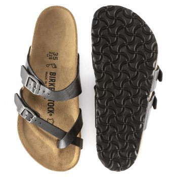 Il sandalo BIRKENSTOCK Mayari è un infradito dalla forma slanciata con cinturino incrociato attorno all’alluce. Il riuscito connubio di design e comfort fa di questo infradito, elegante e comodo al tempo stesso, la scelta ideale per donne e uomini attenti alla moda. La tomaia è in materiale sintetico Birko-Flor® dermoaffine e resistente.
