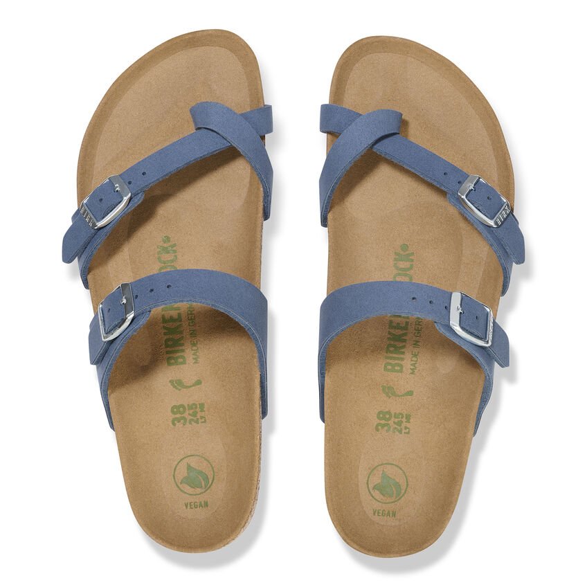 Dinamico e moderno! L’infradito BIRKENSTOCK Mayari è caratterizzato da una linea fluida e unisce il design alla comodità. È stato prodotto con un materiale rinnovato ed è ora disponibile in versione vegan. Il modello viene inoltre sottoposto a controlli effettuati da laboratori indipendenti per garantire che non vi siano parti di origine animale. La tomaia è in un materiale sintetico delicato sulla pelle e con la sensazione tattile di un velluto.