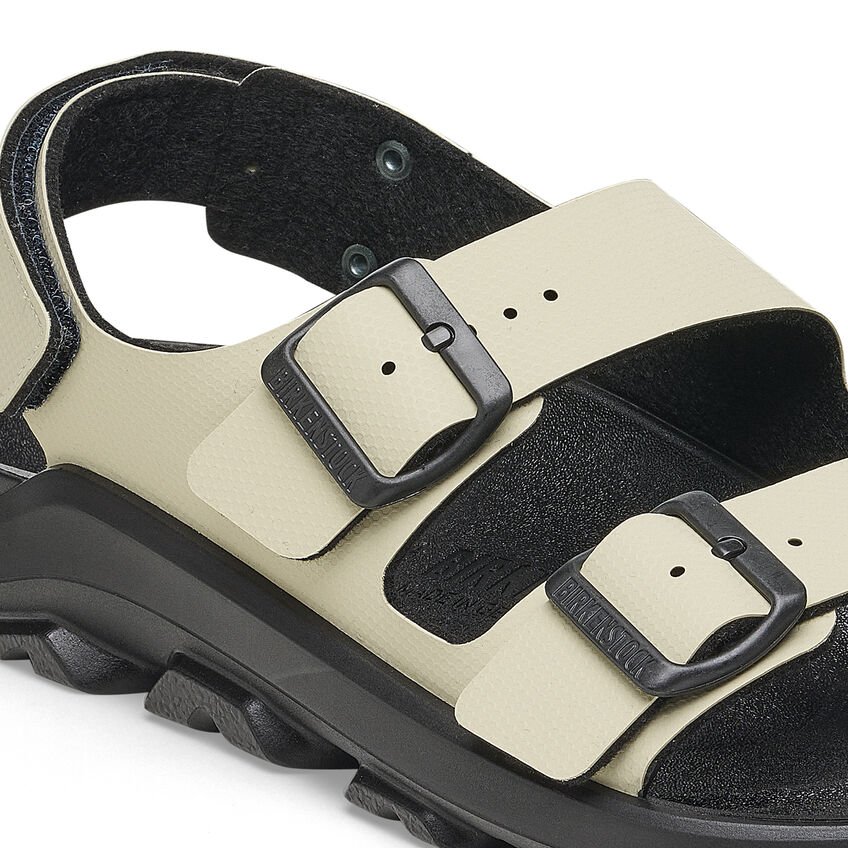 BIRKENSTOCK Mogami è attrezzato per le avventure di tutti i giorni. Tutto grazie al plantare adatto all’acqua con protezione per le dita e alla suola funzionale schiumata in due strati su plantare e tomaia. Il sandalo è particolarmente flessibile e resistente su ogni tipo di terreno. La suola in poliuretano è schiumata in due strati sul plantare ed è quindi molto flessibile, garantisce una buona aderenza e dura particolarmente a lungo. La tomaia è in Birko-Flor®, un materiale sintetico resistente all’usura e delicato per la pelle.