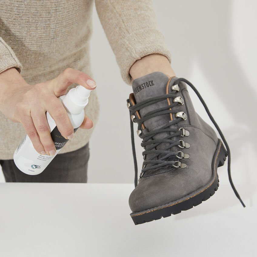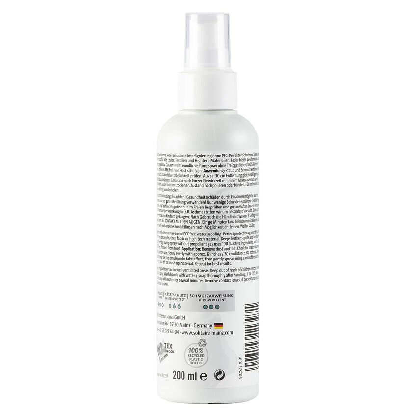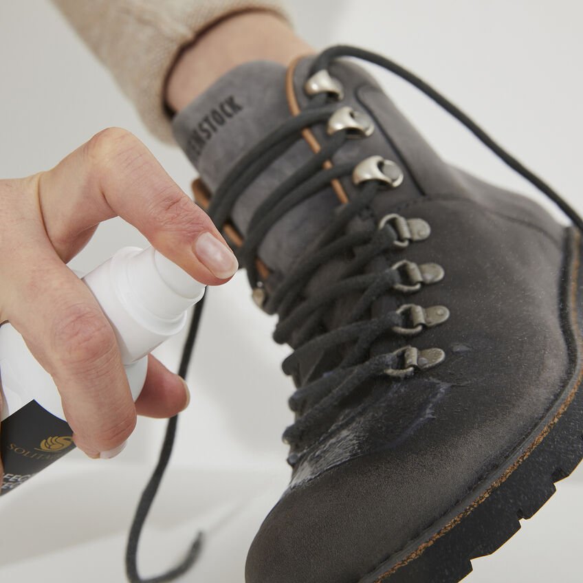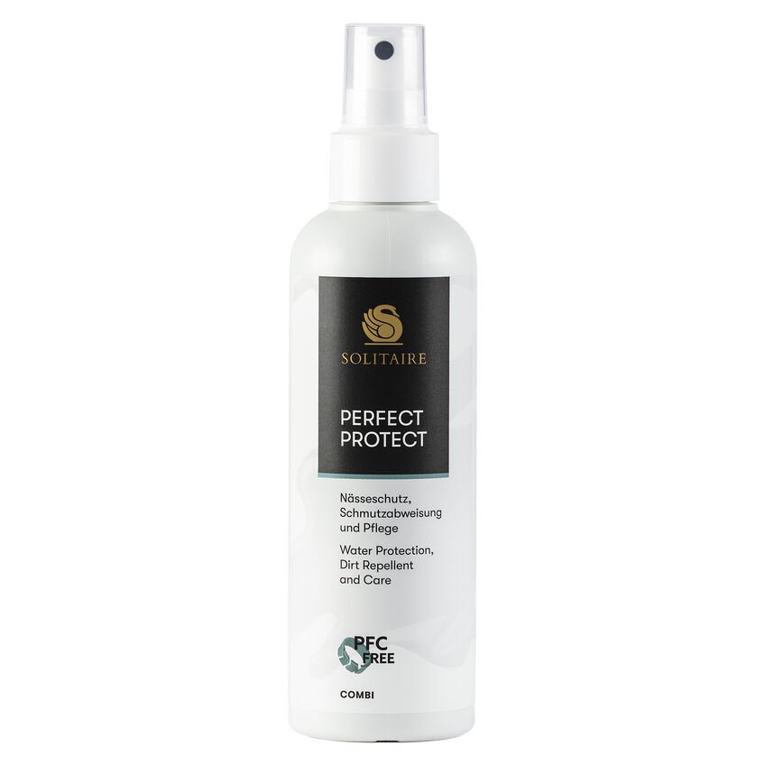 Il prodotto Perfect Protect del nostro partner Solitaire è particolarmente adatto per proteggere da sporco e umidità i nostri stivali e scarpe basse in pelle liscia o ruvida oppure in tessuto. L'impermeabilizzazione a base d’acqua resta efficace in ogni condizione atmosferica e preserva la proprietà traspirante del materiale. Inoltre il prodotto è privo di PFC, gas propellenti e solventi ed è contenuto in un erogatore a pressione, funzionale e sostenibile insieme.