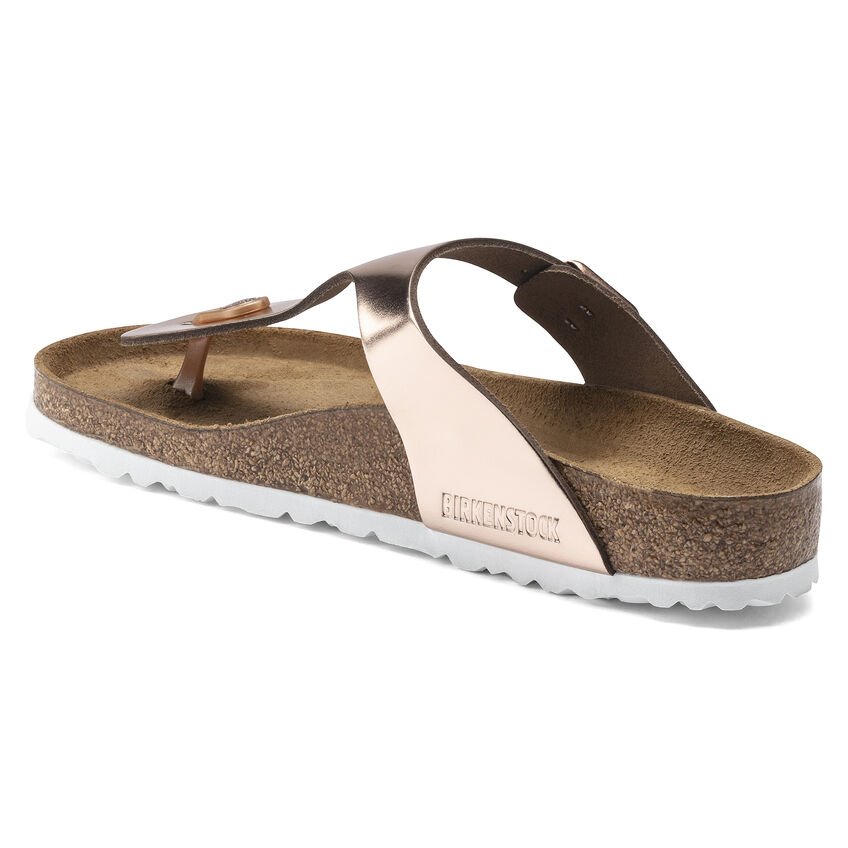 L'infradito BIRKENSTOCK Gizeh è un vero classico che coniuga l’appoggio ottimale al design minimalista di tendenza. Questo sandalo è stato rivisitato e mostra ora un look metallico piuttosto originale. Lo strato metallico riflettente conferisce a questo classico un nuovo splendore e il suo abbinamento con qualsiasi outfit non passa di certo inosservato. Il plantare Soft Footbed migliora il comfort di di indosso grazie all’inserto aggiuntivo in schiuma: una vera coccola per i piedi per tutto il tempo che lo si indossa. La tomaia è in morbida pelle naturale di qualità.