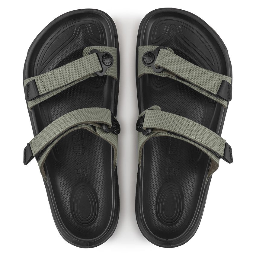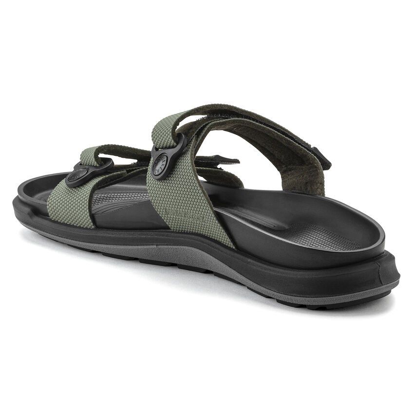 BIRKENSTOCK Sahara è una variazione del nostro classico Arizona ed è il sandalo ideale per chi è sempre in piedi, tutto il giorno. Le fibbie ad ardiglione sono sostituite dalla chiusura in velcro e la suola è stata rafforzata nella zona del tallone. Perfetto per tutti i fan BIRKENSTOCK sempre pronti a fare nuove esperienze! La suola in poliuretano è schiumata in due strati sul plantare ed è quindi molto flessibile, garantisce una buona aderenza e dura particolarmente a lungo. La tomaia è in Birko-Flor®, un materiale sintetico resistente all’usura e delicato per la pelle, che qui è stato reinterpretato in un look futuristico.