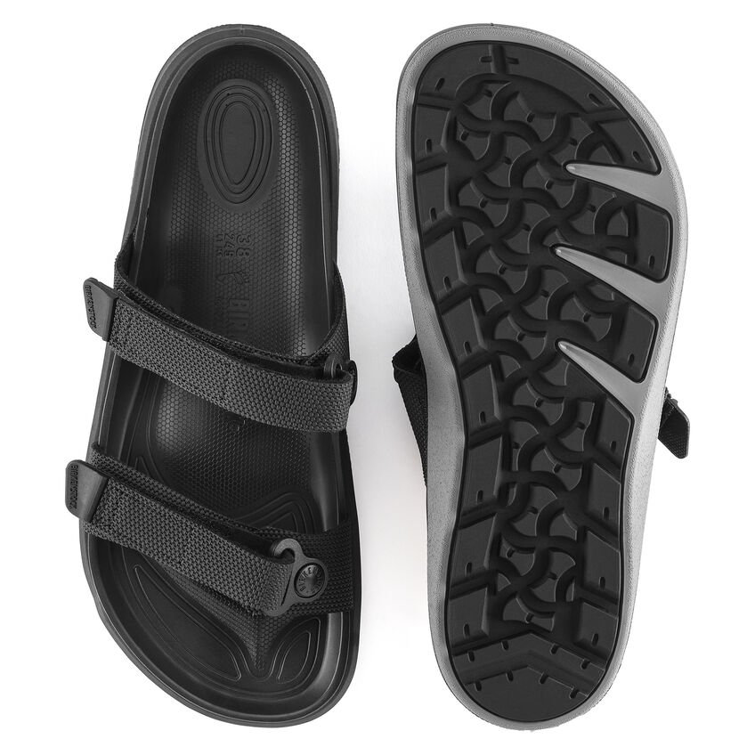 BIRKENSTOCK Sahara è una variazione del nostro classico Arizona ed è il sandalo ideale per chi è sempre in piedi, tutto il giorno. Le fibbie ad ardiglione sono sostituite dalla chiusura in velcro e la suola è stata rafforzata nella zona del tallone. Perfetto per tutti i fan BIRKENSTOCK sempre pronti a fare nuove esperienze! La suola in poliuretano è schiumata in due strati sul plantare ed è quindi molto flessibile, garantisce una buona aderenza e dura particolarmente a lungo. La tomaia è in Birko-Flor®, un materiale sintetico resistente all’usura e delicato per la pelle, che qui è stato reinterpretato in un look futuristico.