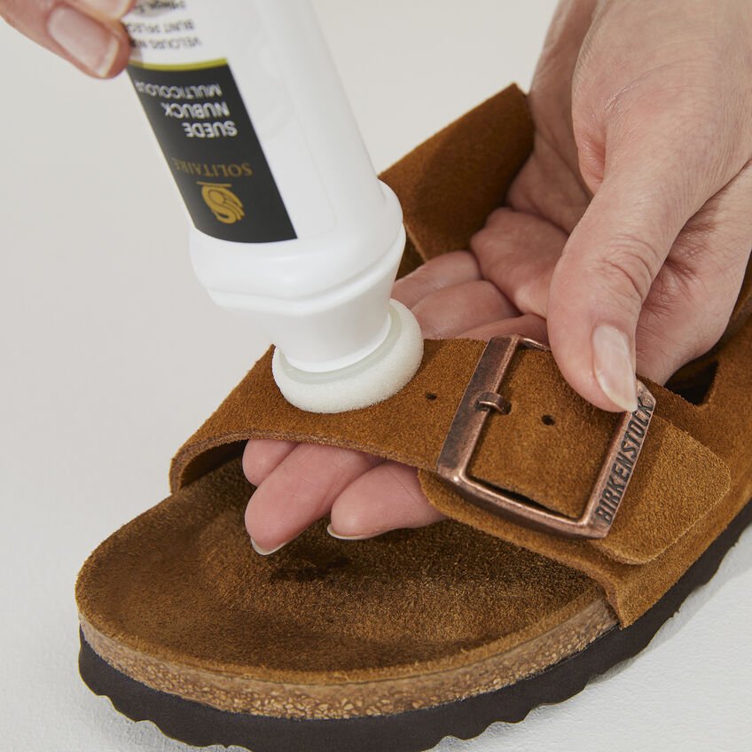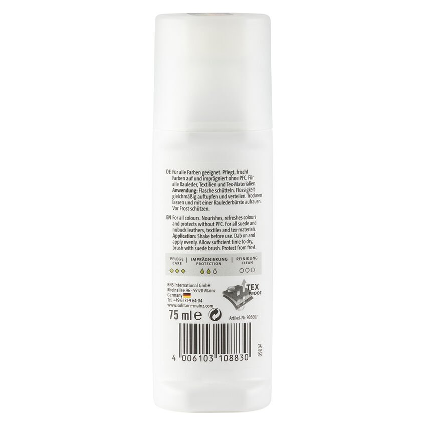 Questa Multi-Colour Care del nostro partner Solitaire è particolarmente adatta per la manutenzione e l’impermeabilizzazione della pelle ruvida. Questa comprende la pelle scamosciata, la pelle nabuk e il camoscio. Il prodotto nutre e protegge il materiale e ne rinfresca il colore.