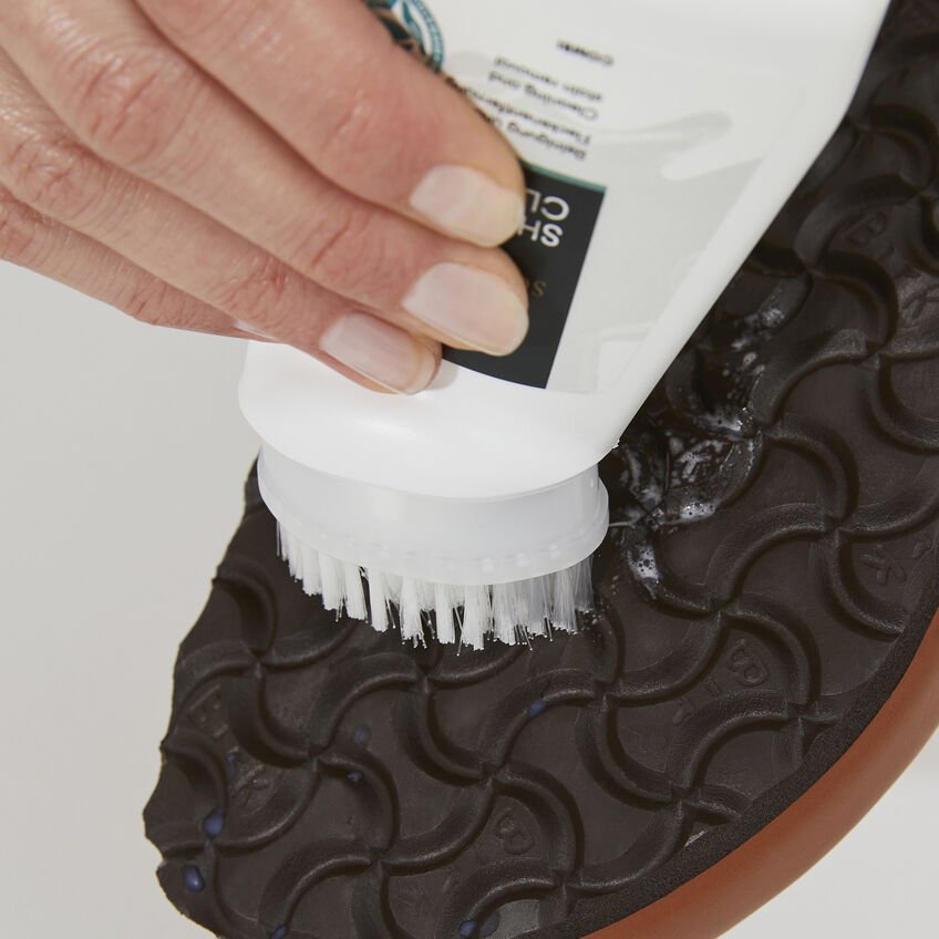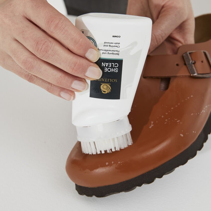 Il prodotto Shoe Clean del nostro partner Solitaire è particolarmente adatto per la pulizia delle pelli scamosciate, dunque per le solette interne della maggior parte dei nostri sandali. Grazie alla spazzola integrata rimuove efficacemente anche le macchie, i residui di crema e gli aloni d’acqua.
