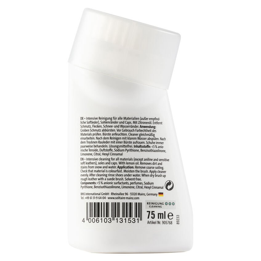 Utilizzo: dopo aver rimosso lo sporco grossolanamente e avere effettuato una prova di compatibilità, tenere la boccetta verticalmente a testa in giù e pulire usando la spazzola integrata. Infine rimuovere il prodotto con acqua e lasciare asciugare le scarpe lentamente. Successivamente applicare anche per il trattamento della prodotto per pelli ruvide tomaia.