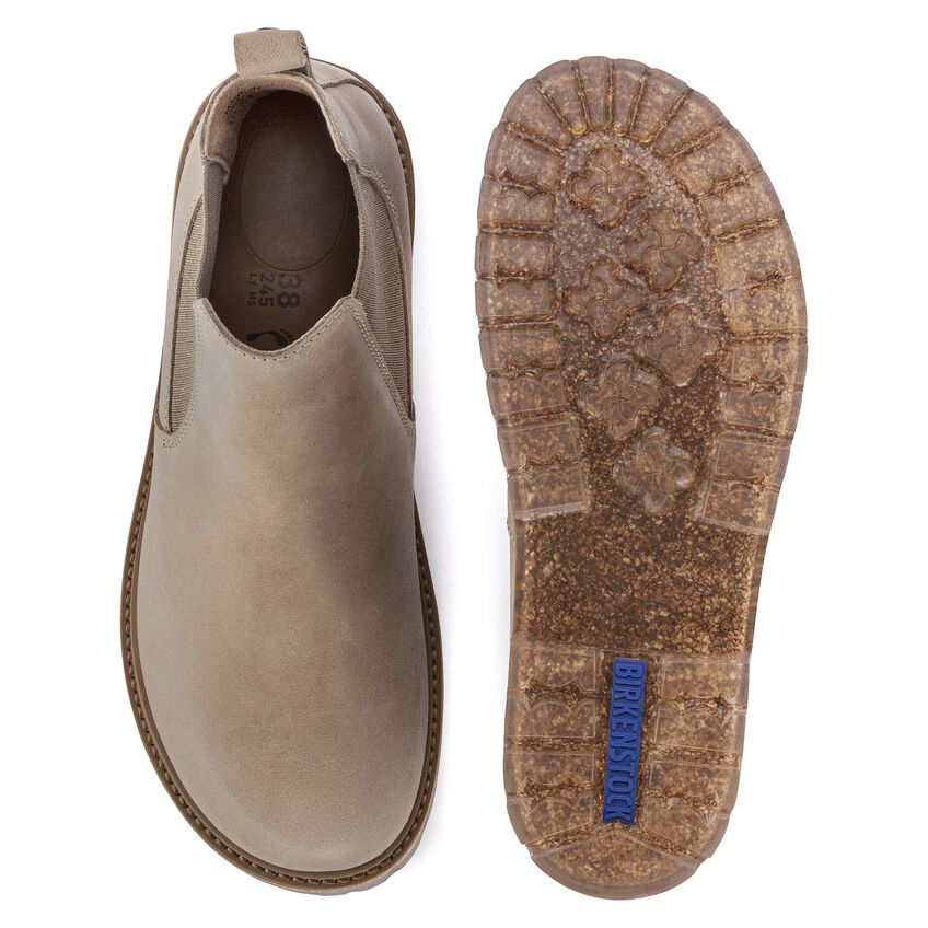 Con Stalon, BIRKENSTOCK presenta una versione robusta dello stivaletto Chelsea. Gli elementi tipici del Chelsea, come gli inserti elastici sul gambale senza stringhe e la linguetta sul tallone, sono stati qui resi ancora più marcati e, inoltre, la suola leggera in materiali sintetici, combinata con il rivestimento interno in microfibra che non assorbe umidità, risulterà un dettaglio davvero sorprendente. La suola esterna dal profilo in sughero dona a questa scarpa un design autentico. La tomaia è in pelle scamosciata idrofoba e oliata.