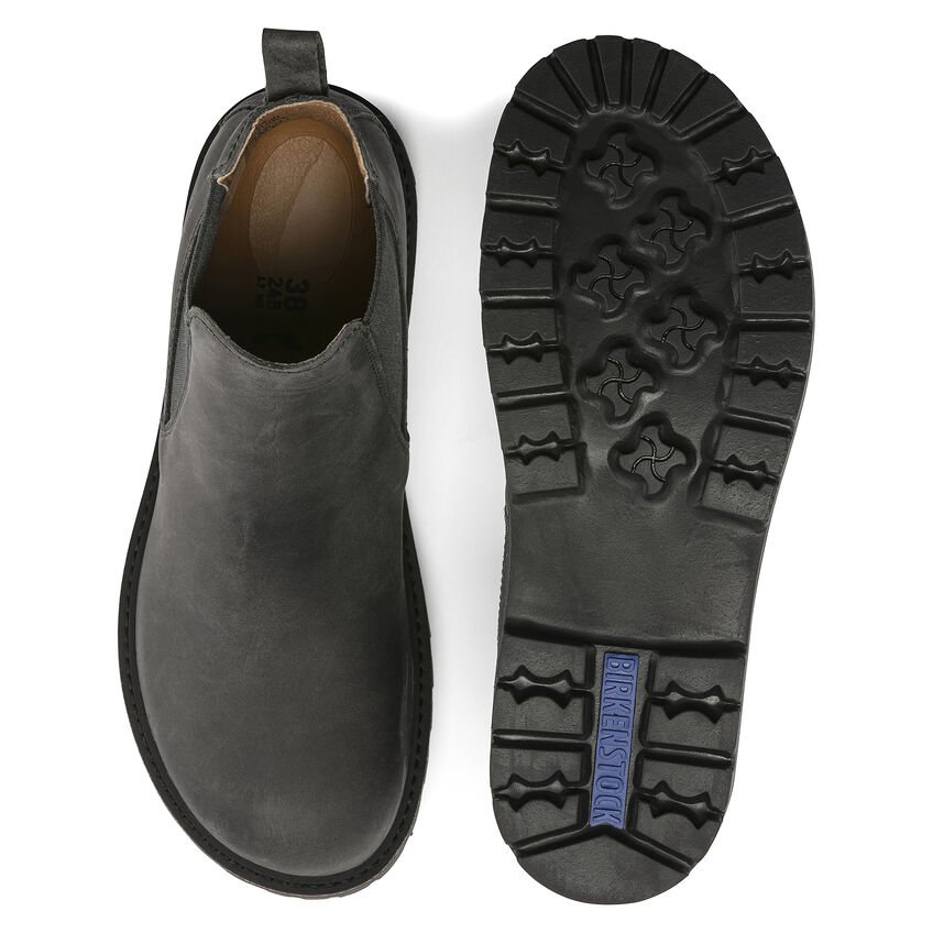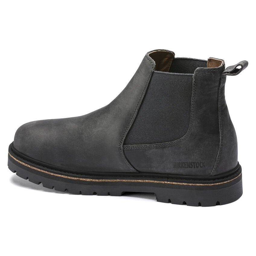 Con Stalon, BIRKENSTOCK presenta una versione robusta dello stivaletto Chelsea. Gli elementi tipici del Chelsea, come gli inserti elastici sul gambale senza stringhe e la linguetta sul tallone, sono stati qui resi ancora più marcati e, inoltre, la suola leggera in materiali sintetici, combinata con il rivestimento interno in microfibra che non assorbe umidità, risulterà un dettaglio davvero sorprendente. La suola esterna dal profilo in sughero dona a questa scarpa un design autentico. La tomaia è in pelle scamosciata idrofoba e oliata.