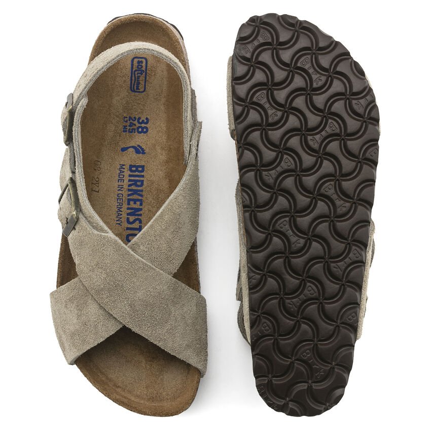 BIRKENSTOCK Tulum è caratterizzato da un look sportivo. I cinturini incrociati e il cinturino per il tallone conferiscono al sandalo il suo look tutto particolare. Grazie allo speciale cuscinetto in schiuma, il morbido plantare offre una comodità eccezionale ed è una vera coccola per i piedi durante tutto il giorno. Le fibbie ad ardiglione in colore coordinato completano l’aspetto raffinato del sandalo. La tomaia è composta da pelle scamosciata particolarmente morbida, che aderisce al piede come una seconda pelle.