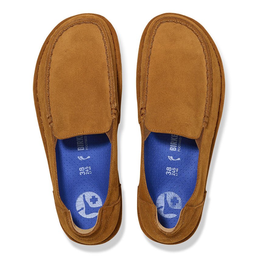 BIRKENSTOCK Utti è una scarpa in stile mocassino dal design senza tempo. L’appariscente cucitura è una vera chicca. La morbida linguetta sul tallone aumenta la comodità di indosso ma permette anche di infilare e sfilare comodamente la scarpa. Il plantare Deep Blue è comodo e leggero e rende questa scarpa così confortevole che può essere indossata senza problemi ventiquattro ore su ventiquattro. La tomaia contribuisce a ricreare un design naturale grazie alla pelle scamosciata particolarmente morbida che aderisce al piede come una seconda pelle.