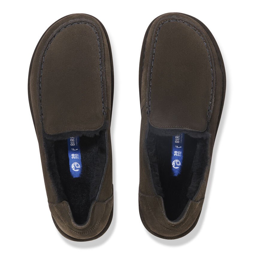 BIRKENSTOCK Utti è una scarpa in stile mocassino dal design senza tempo. L’appariscente cucitura è una vera chicca. La morbida linguetta sul tallone aumenta la comodità di indosso ma permette anche di infilare e sfilare comodamente la scarpa. Il plantare Deep Blue è comodo e leggero e rende questa scarpa così confortevole che può essere indossata senza problemi ventiquattro ore su ventiquattro. Questo classico si mostra qui in una variante particolarmente comoda con pelliccia di agnello. La tomaia contribuisce a ricreare un design naturale grazie alla pelle scamosciata particolarmente morbida che aderisce al piede come una seconda pelle.