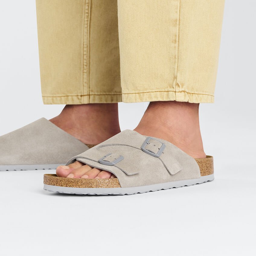 Il modello BIRKENSTOCK Zürich coniuga la stabilità della scarpa chiusa e la leggerezza del sandalo, e riscuote successo in pari misura fra uomini e donne. La versione chiusa lateralmente, ma aperta nella zona del tallone e delle dita assicura una buona areazione della pianta del piede. Al design naturale contribuisce la tomaia in pelle scamosciata particolarmente morbida che abbraccia il piede come una seconda pelle.