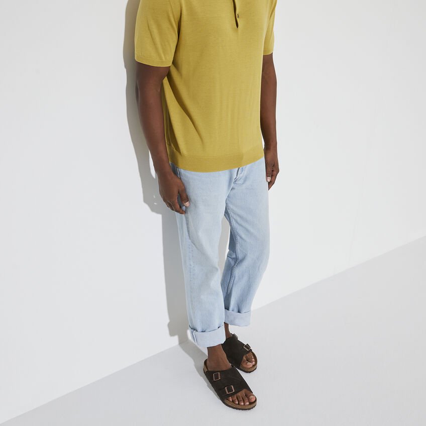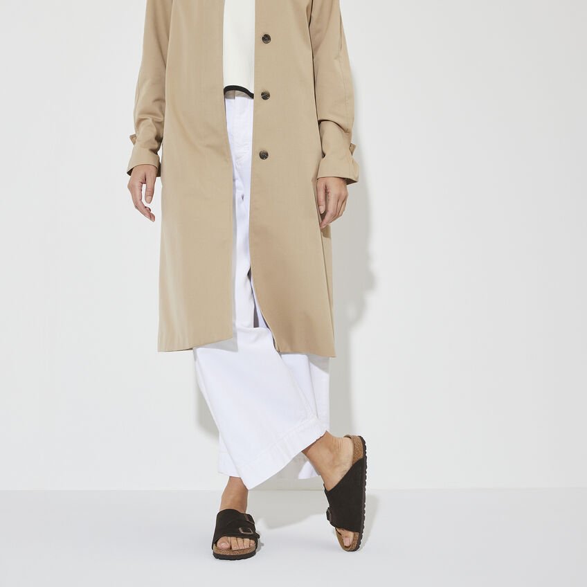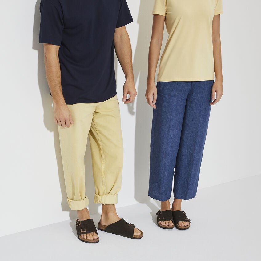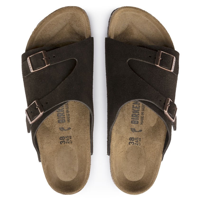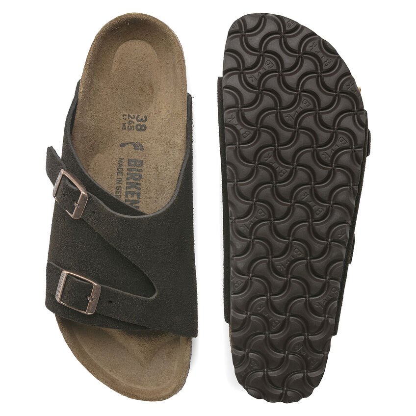 Il modello BIRKENSTOCK Zürich coniuga la stabilità della scarpa chiusa e la leggerezza del sandalo, e riscuote successo in pari misura fra uomini e donne. La versione chiusa lateralmente, ma aperta nella zona del tallone e delle dita assicura una buona areazione della pianta del piede. Al design naturale contribuisce la tomaia in pelle scamosciata particolarmente morbida che abbraccia il piede come una seconda pelle.